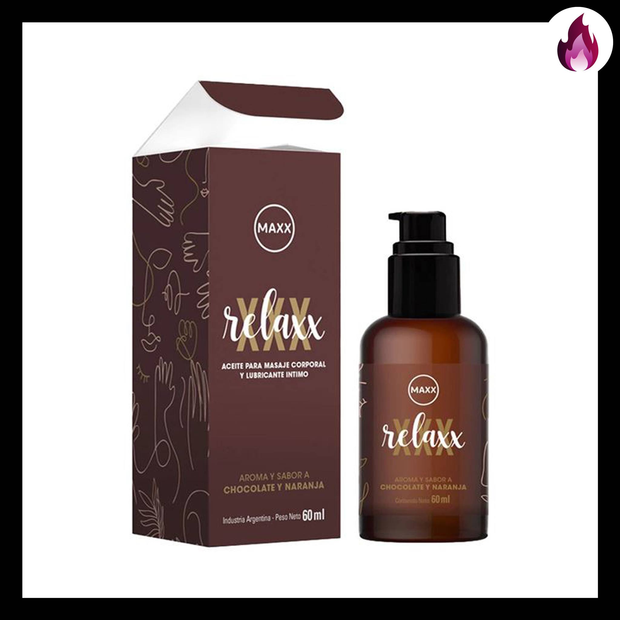 Relaxx – Aceite de Masajes y Lubricante Intimo Sabor Chocolate y Naranja x60ml